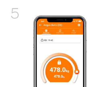 Una vez conectado, cuando un peso llegue a sus barras de carga, el peso se mostrará y almacenará dentro de Animal Performance y la aplicación móvil.