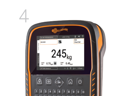 Os pesos são enviados por meio da conectividade Bluetooth diretamente para uma Balança Gallagher, eliminando o aborrecimento e a frustração das barras de pesagem tradicionais.