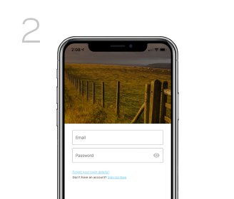 Faça o download do aplicativo Animal Performance Mobile na sua loja de aplicativos, selecione 'Inscrever-se agora' e registre sua conta.