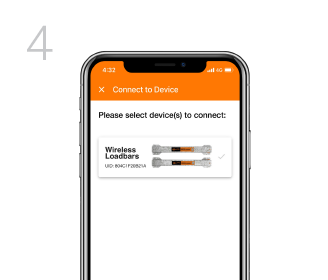 Selecione as barras de pesagem sem fio no seu aplicativo e aperte conectar. Uma conexão será criada entre o telefone e as barras de pesagem sem fio.